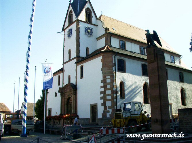 Dann ging es weiter nach Großostheim, wo die Dreharbeiten zu "Mit Leib und Seele" stattfanden. Die ersten 2 Bilder zeigen die Kirche des Städtchens. Leider waren grad Bauarbeiten im Gange und so bin ich nicht viel näher ran gekommen. Direkt gegenüber der Kirche ist das Gebäude, das in der Serie als Wirtshaus "Eberburg" gedient hat.