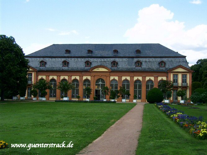 Am Mittwoch war ich dann wieder in Darmstadt selbst unterwegs, auf der Suche nach ein paar weiteren Drombusch-Drehorten. Da es aber bald anfing mit regnen und ich nachmittags noch einen anderen Termin hatte, hab ich nur wenige geschafft. Erst mal bin ich nach Kranichstein gefahren und zum Jagdschloss gelaufen. Hier haben in der Serie Tina und Chris Drombusch geheiratet. Aber auch Günter Strack und seine Frau Lore haben hier den Bund fürs Leben geschlossen. Dann war ich noch in der Orangerie, im Stadtteil Bessungen, wo Günter als Onkel Ludwig mal als Kellner gejobbt hatte. Die Orangerie ist eine schöne große Gartenanlage, wo man im Schatten der Bäume herrlich entspannen kann. Wer noch mehr Bilder von Drehorten sehen will, kann ja mal der Drombusch-Homepage einen Besuch abstatten. [©August 2005]