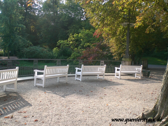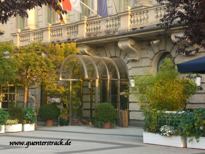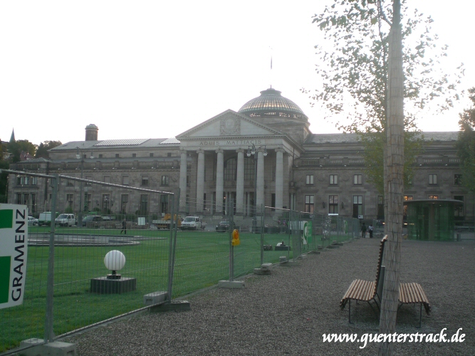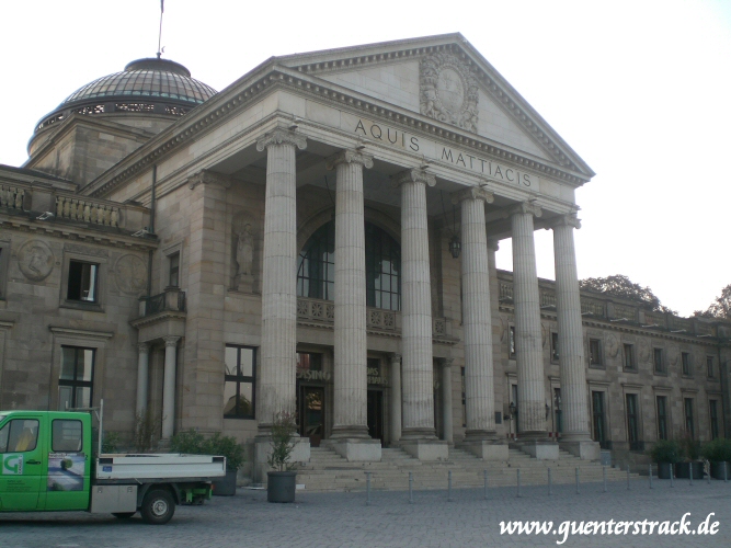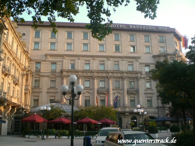 Mittags trafen wir fünf Fans uns wieder vor dem Hotel der beiden Christofs. Zusammen zogen wir dann zum Gebäude des "Darmstädter Echos". Wir machten Fotos und beschlossen langsam durch den Prinz-Emil-Garten zu ziehen in Richtung Orangerie. Das Wetter spielte wieder mit (wenn Englein reisen) und wir setzten uns in das kleine Cafe, wo die Christofs und ich schon im Juni die tolle Reise beendet hatten und wir quatschten uns nochmal so richtig aus. Dann ging es wieder zurück zu den Autos und die Jungs fuhren nach Hause. Am nächsten Morgen, es war Montag, fuhr ich nach Wiesbaden rüber und ging erneut in das dortige Staatsarchiv. Ich wollte weiter nach den Theaterstücken forschen, in denen Günter in seiner Wiesbadener Zeit gespielt hatte. Bis gegen 17 Uhr saß ich also da und laß Theaterprogramme und Kritiken. Dann ging es wieder zurück nach Darmstadt. Am Dienstag beschloss ich, schon ganz früh wieder nach Wiesbaden zu fahren und vor meiner Archivsession schon mal die Stadt zu erkunden. So war ich also schon punkt 7 Uhr in der Wiesbadener Innenstadt unterwegs. Nach etwa zwei Stunden war ich dann mit der Fotosession in der Wiesbadener Innenstadt fertig und habe mich wieder dem Theaterarchiv zugewendet. Da ich mit meiner Arbeit recht zügig voran kam, konnte ich den Nachmittag noch dazu nutzen von Wiesbaden aus einen kleinen Abstecher nach Eltville zu machen. Nach so vielen verschiedenen Eindrücken und gefundenen Drehorten war ich froh, als ich endlich in mein Hotelbett fallen konnte. Am nächsten Morgen ging es dann leider schon wieder nach Hause. [©Oktober 2006 und April 2007]