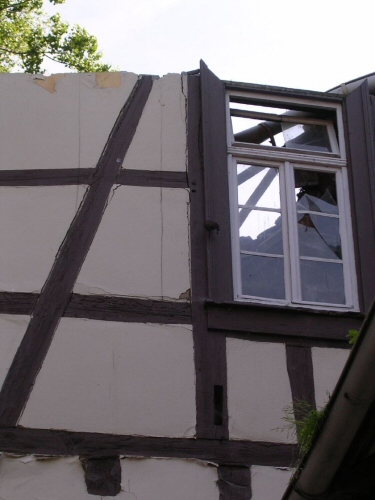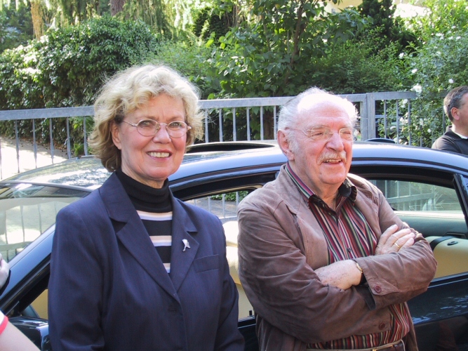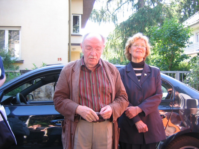 Hallo liebe Günter und Diese Drombuschs-FansIm Juni 2006 hat es mich einmal nicht nur zum gucken nach Darmstadt verschlagen, sondern endlich auch mal um etwas aktiv mitzugestalten. Meine beiden Freunde von der Drombusch-Webseite hatten sich von den Fans im Forum dazu überreden lassen, ein Fantreffen an den Drehorten in Darmstadt und der Bundenmühle zu organisieren. Ich habe bei der Planung gerne mit Rat und Tat geholfen. Am Freitag, den 9.6. bin ich dann schon 6 Uhr früh (und so was am ersten Urlaubstag!) ab nach Darmstadt, da ich 10 Uhr einen Termin im Theaterarchiv hatte. Nachdem ich mich durch den zähen Verkehr um Frankfurt gekämpft hatte, konnte ich diesen Termin gerade noch so einhalten. Ich habe im Theaterarchiv drei Stunden nach Günters Rollen in den Theaterstücken zwischen 1951 bis 1953 am Darmstädter Theater gesucht und bin auch mehr als fündig geworden. Als ich das Archiv dann 13 Uhr verlassen habe, bin ich schnellstens Richtung Hotel, da meine beiden Münchner Buben schon auf dem Weg dorthin waren. Kaum im Hotel angekommen, erreichte mich eine SMS, dass sie gleich da sind. Also habe ich alles stehen und liegen gelassen und mich vor dem Hotel hinter einem großen Strauch mit der Kamera auf die Lauer gelegt. Entstanden ist nebenstehender Schnappschuss. Nachdem wir dann in Ruhe unsere Hotelzimmer bezogen und uns etwas frisch gemacht hatten, sind wir zusammen zur Straßenbahn. Wir wollten zu dem Haus, welches in der Serie "Diese Drombuschs" als Villa von Tinas Eltern gedient hatte. Dummerweise sind wir vor lauter Gequatsche in die falsche Bahn eingestiegen und mit der Schnelllinie bis nach Eberstadt hinein gefahren. So weit wollten wir gar nicht.