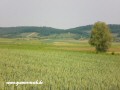 Der Weinberg befindet sich hinter dem kleinen Ort Krassolzheim, einer Gemeinde die zu Sugenheim gehört, mitten im Naturpark Steigerwald. Man kann den Weinberg bereits aus einiger Entfernung sehen. Am besten man fährt durch Krassolzheim durch und parkt dann am Ende des Ortes auf der rechten Seite auf einem kleinen Wanderparkplatz. Von dort läuft man rechter Hand einfach nur noch auf den Weinberg drauf zu (Bild 2). Ich hatte wirklich Glück mit dem Wetter, denn der Weinberg wurde herrlich von der Sonne angestrahlt und wirkte unglaublich romantisch. Ich habe mich langsam drauf zu bewegt und dabei von den verschiedensten Positionen den Berg und das Haus fotografiert. Auf dem Weg habe ich dann ein paar Weinbauern getroffen, die vom Berg kamen und habe sie gefragt, ob ich mal bis zum Haus hoch darf und ein paar Fotos machen könnte. Glücklich über die Erlaubnis erklomm ich den steilen Hang und kann dem Günter nur großen Respekt zollen, dass er das ohne größere Strapazen bewältigt hat, jedenfalls merkt man ihm in der Serie kaum etwas an. Als ich oben ankam, war ich fertig und Schweiß gebadet! Die Sonne brannte gegen 11 Uhr schon sehr heftig.