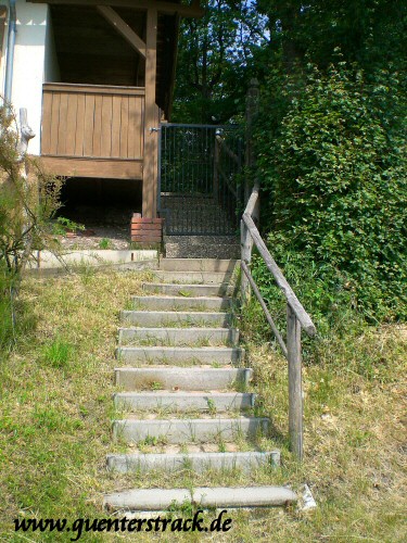 Die Eingangstür zum Keller ist noch unverändert. Die steilen Treppenstufen zum Haus wurden jedoch neu gemacht.